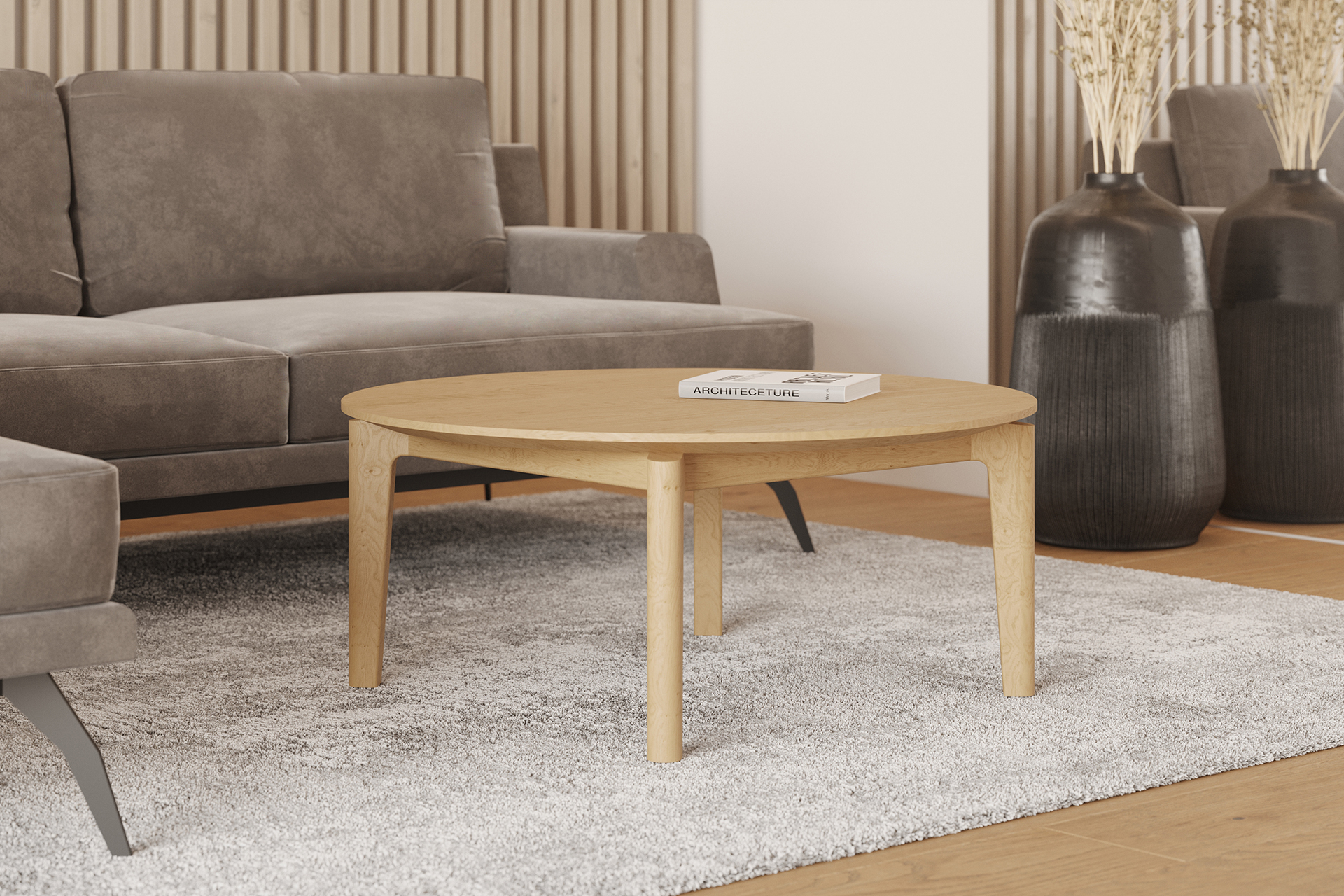 Kulatý konferenční stolek zajímavý svými precizně zpracovanými detaily. Tenká stolová deska usazená na střed křížové podnože v této zvolené kombinaci navozuje pocit jejího téměř levitujícího dojmu.