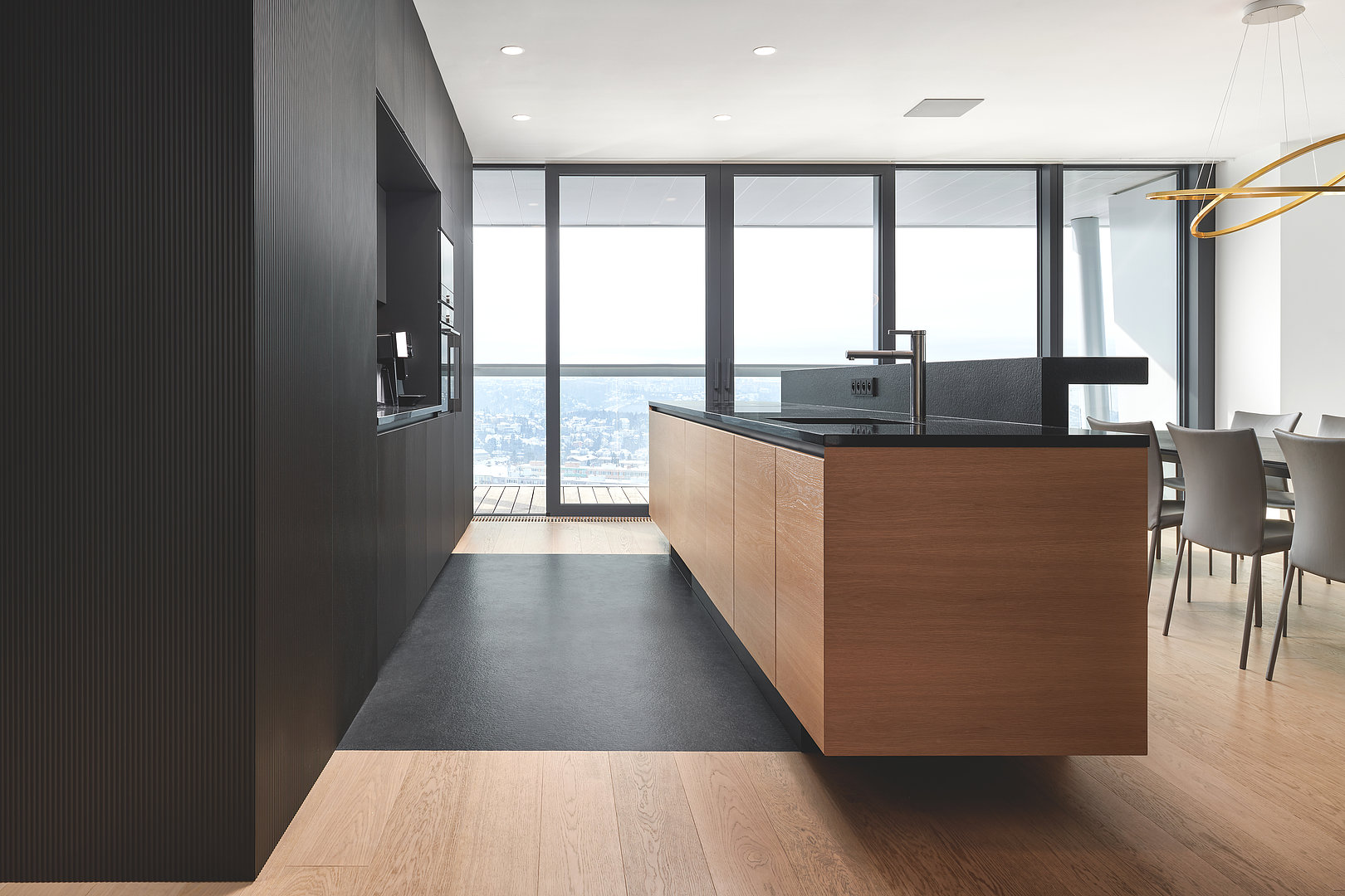 Hlavním prvkem této kuchyně je minimalistický vzor vlnek. Designéři se při návrhu nechali inspirovat přírodou a zvolili tak zakomponování vodního elementu, který právě vzor vlnky nápadně připomíná.
