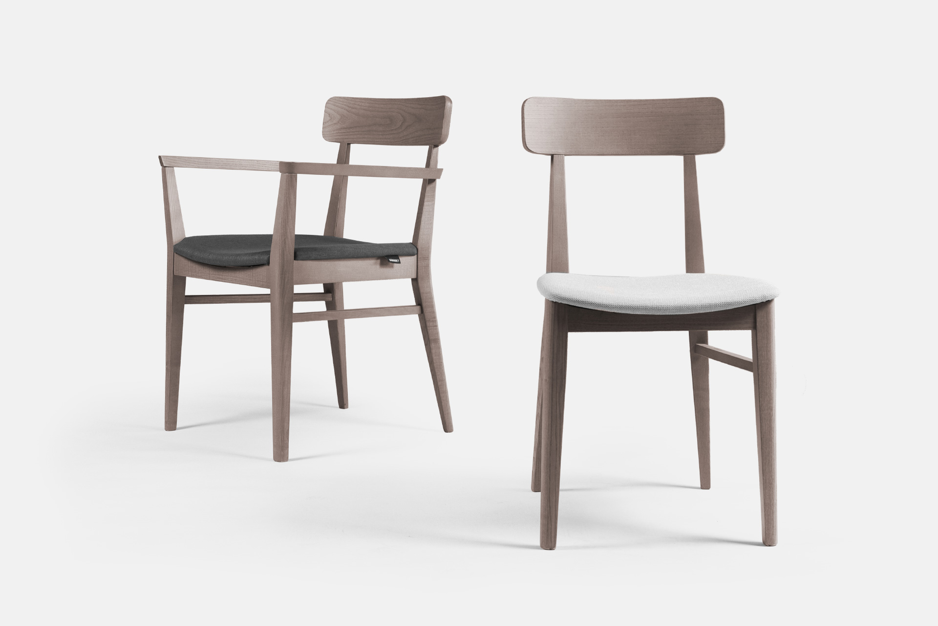 Kolekce COCO nabízí klasickou kuchyňskou židli, židli s područkami a barovou židli. Všechny varianty jsou dostupné se sedákem z dřevěné překližky nebo čalouněným sedákem.