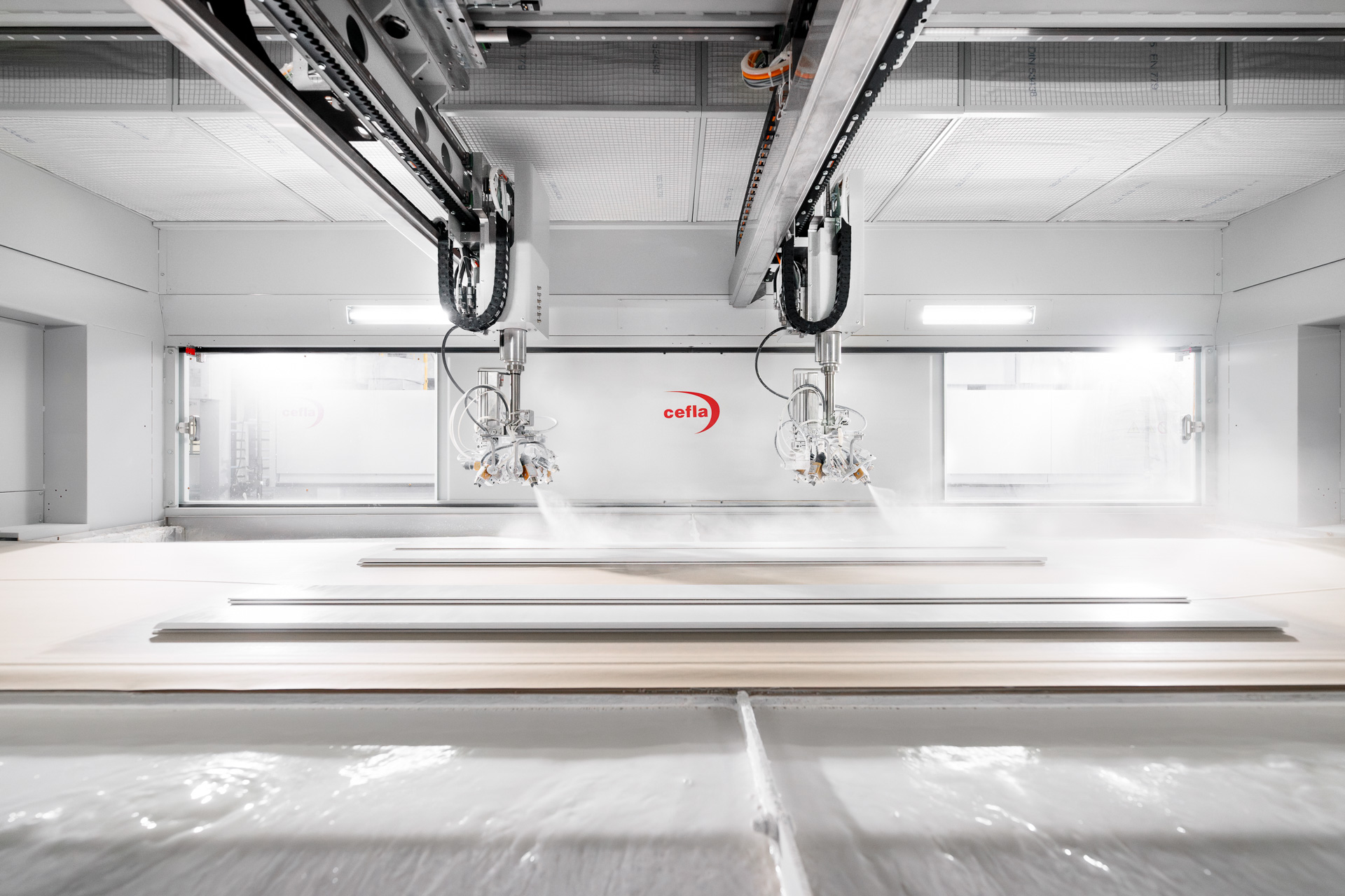 Pouze robotické lakování zajistí rovnoměrný nástřik laku na každou část nábytkové dílce, čímž vzniká dokonale lakovaný a odolný povrch.